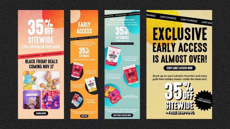 Lakanto always ends the year with huge holiday savings on all their monk fruit sweetened, sugar-free products. They asked us to handle their Black Friday campaigns for both 2023 and 2024. And you had to see the first year's posts to believe it! We went with a kaleidoscope, illusion theme.