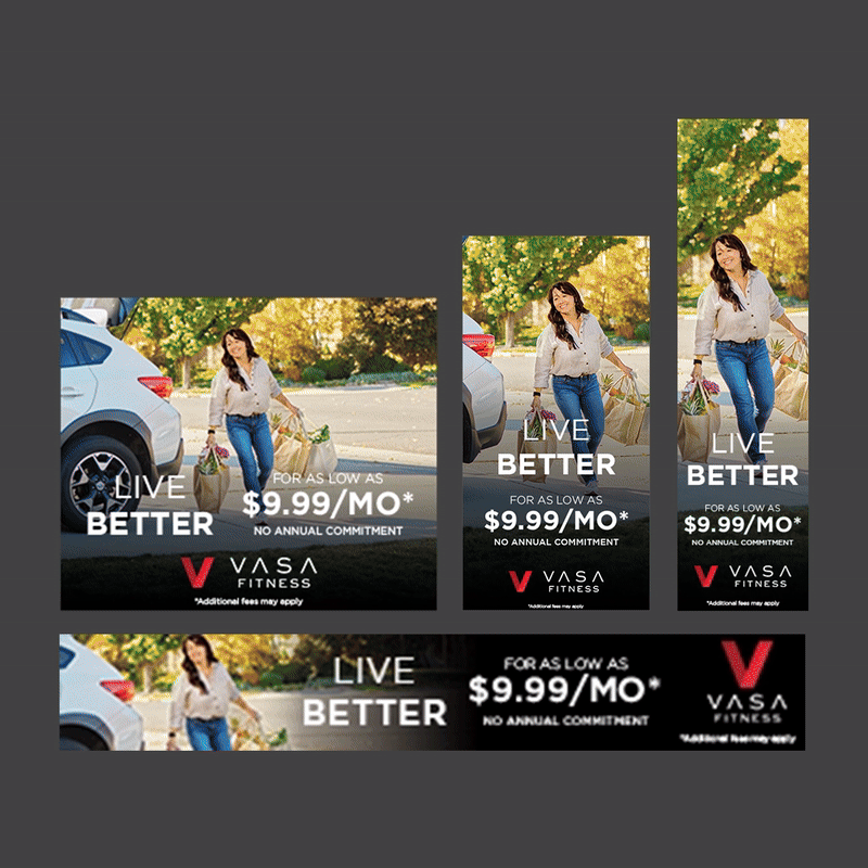 VASA Fitness came to us at the start of 2024 for a new campaign to show how VASA and their premium amenities changed people's lives. With that, the "Live Better" campaign was born: Photoshoots showing VASA goers doing specific workouts in the gym then doing those similar motions in their everyday life, interviews with members sharing their emotional stories, and a whole lot of digital ads, billboards, and emails!