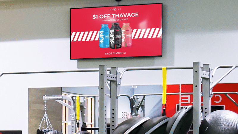 All throughout VASA Fitness's many boutique gyms are posters and TV screens advertising in-club deals for their REVIVE foods and beverages. We were responsible for designing these posters, then bringing them to life with animation for the TV screens mounted all around the club.